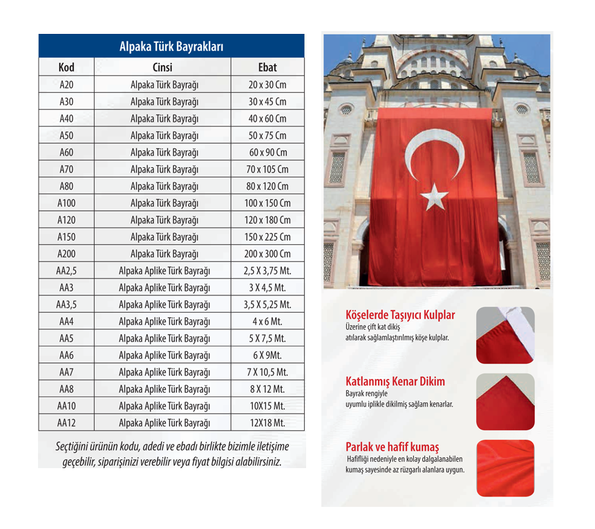 Türkiye’nin köklü ve güvenilir Türk Bayrağı üreticisi olarak sizlere gururla hizmet vermekteyiz. Yılların verdiği deneyim ve bilgi birikimiyle, her biri özenle hazırlanmış bayraklarımızı en yüksek kalite standartlarında üretmekteyiz.